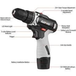 ZHUOXUAN 1680D Portable Perceuse Sans Fil Tournevis Taille Sac à Outils électriques Ceinture Noir