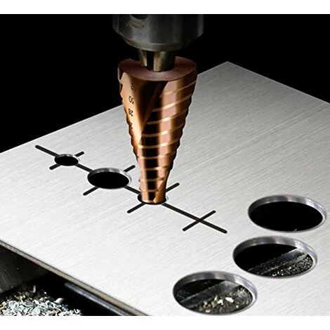 Le foret à une étape répond à toutes vos exigences, 4-32 mm M35 HSS avec 15 tailles : 4 mm, 6 mm, 8 mm, 10 mm, 12 mm, 14 mm, 16 mm, 18 mm, 20 mm, 22 mm, 24 mm, 26 mm, 28 mm, 30 mm, 32 mm