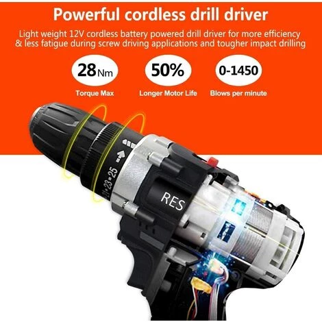 Perceuse Sans Fil Puissant: – Kit de perceuse sans fil avec rĂ©glage de couple18 + 1, qui vous offre plus de 18 options pour contrĂ´ler prĂ©cisĂ©ment le forage du bois, du mĂ©tal, du plastique et d’autres besoins les plus quotidiens. est disponible pour la plupart des travaux quotidiens, mĂŞme les travaux difficiles.