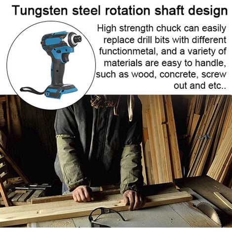 Multifonction, peut être utilisé comme perceuse à percussion (poinçonnage sur le mur et le sol, comme le forage de béton, le forage de briques de ciment, le forage de mur de diamant rouge), clé électrique (démontage et installation de pneu, construction de support en bois) et outil de vissage de vis (démontage électrique et réparation, démontage de jouets, montage de meubles).