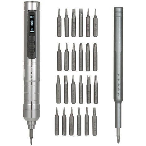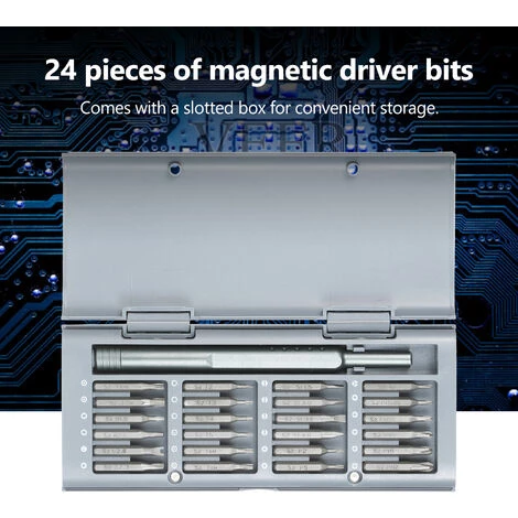 Lumière LED et étui de rangement – L’extrémité avant des trois éclairages rapprochés à LED pour offrir aux utilisateurs une utilisation confortable et à l’aise même dans un environnement sombre. Livré avec 24 embouts magnétiques et une boîte à fentes pour un rangement pratique.