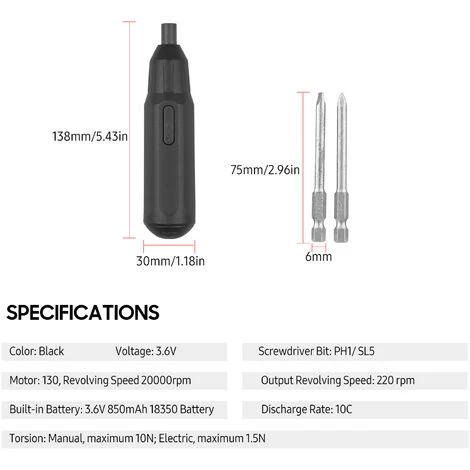 Ce mini tournevis électrique rechargeable est facile à utiliser et portable à transporter. Avec 2 tournevis différents (fente/croix), il peut répondre à différents types de besoins de travail. En outre, il dispose de plusieurs protections de circuit pour une utilisation en toute sécurité.