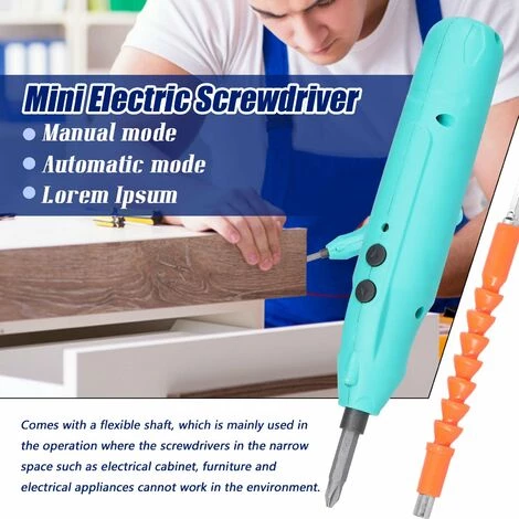 Il s’agit d’une sorte de jeu de tournevis électrique, comprenant un tournevis électrique et 10 embouts. Supporte la rotation positive et négative, facile à ajuster en fonction de vos demandes. Prend en charge le mode manuel et le mode automatique, si les vis sont trop serrées, vous pouvez faire pivoter le tournevis manuellement. Livré avec un arbre flexible, qui est principalement utilisé dans l’opération où les tournevis dans l’espace étroit comme les armoires électriques, les meubles et les appareils électriques ne peuvent pas fonctionner dans l’environnement. Tu peux essayer.
