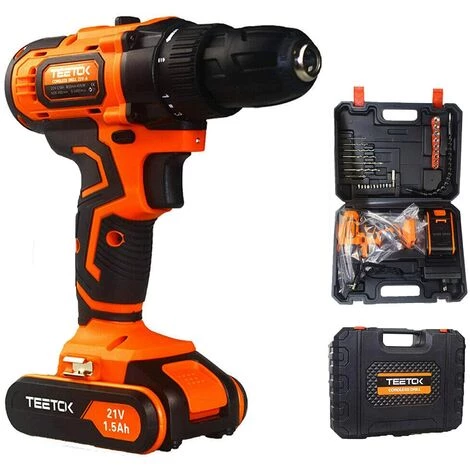 CONCEPTION DURABLE MAIS L¨¦G¨¨RE : Avec une batterie Li-ion 21V 1500mAh, la Teetok est une puissante perceuse sans fil 21V qui est tout aussi efficace pour le bricolage ¨¤ la maison ou au bureau que pour une utilisation professionnelle sur les chantiers de construction. Avec du caoutchouc moul¨¦ ergonomique, r¨¦sistant aux chocs et doux au toucher, vous pouvez ¨ºtre s?r qu’il est suffisamment solide pour supporter tout ce que vous lui lancez.