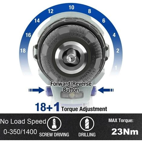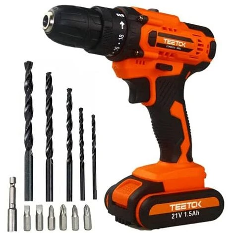 La perceuse sans fil Teetok 21V vous offre une puissance stable pour une meilleure conduite. Il peut fournir jusqu’¨¤ 45 Nm de couple pour g¨¦rer les travaux difficiles. Il utilise de puissantes batteries lithium-ion de 1500 mAh toujours pr¨ºtes ¨¤ l’emploi. Le moteur r¨¦versible int¨¦gr¨¦ offre 2 r¨¦glages de vitesse ¨¤ 0-350 tr/min et 0-1400 tr/min pour une application plus large.