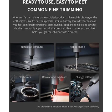 Convient à une grande variété de tâches ménagères, telles que le démontage et le montage de petits meubles, tables et chaises, lits, armoires, poignées de porte, divers types de lampes, interrupteurs, etc.