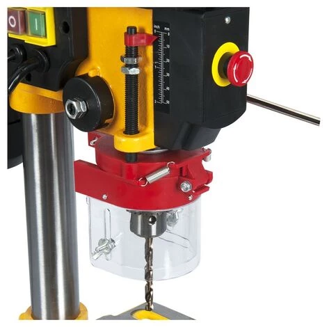 Perceuse à colonne VITOPOWER Puissance 500W 5 vitesses Colonne en fonte Table 165 x 160 mm Mandrin à couronne dentée hauteur réglable écran de protection réglable Transmission pour courroie trapézoîdale Interrupteur de sécurité Inclinable à 45° Bague graduée Diamètre de perçage max 13mm Profondeur de perçage 50 mm Dimensions 385 x 610mm Poids 14 kg