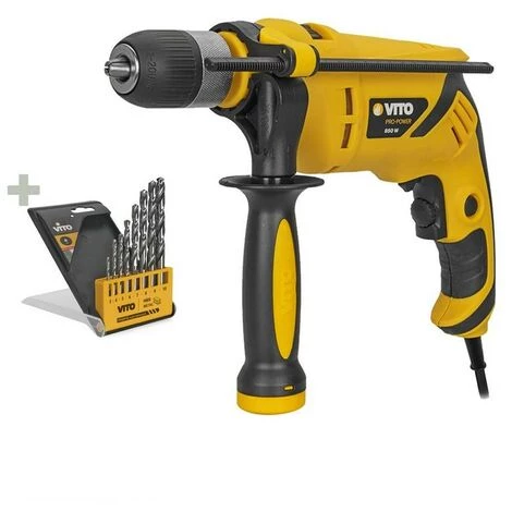 La perceuse à percussion 850W VITOPOWER est conçue pour percer ou visser dans les matériaux durs du bâtiment. Perçage rapide efficace garanti grâce à sa vitesse de rotation de 3000 tr/min. Équipée d’un mandrin auto serrant de 13 mm.
