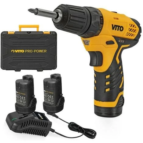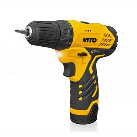 La perceuse/visseuse sans fil VITO d’une puissance de 12V est le produit fiable et robuste conçu pour les utilisateurs exigeants. Livrée avec 2 batteries de 2.0Ah Li-ion, son chargeur ultra puissant (60 mn de charge) et ses embouts de vissage. Dotée d’un indicateur de charge de batterie. Elle propose un nouveau design et une ergonomie très agréable à l’utilisation. Le confort est amélioré grâce à l’appui en caoutchouc et la poignée dorsale très ergonomique et anti glissement. Fonction arrêt rapide -1100 tr 1100/mn -Diamètre max de forêt 10 mm – Mallette de rangement – Poids Visseuse 1.1 kg.