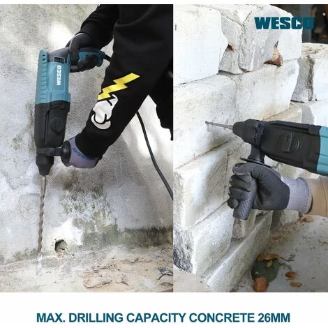 800W Moteur en cuivre pur – Délivre 0-5300/min de taux d’impact et 2,8 J d’énergie d’impact pour un perçage rapide et des performances élevées d’enlèvement du burin. Les composants de haute qualité assurent la robustesse, la fiabilité et une longue durée de vie. La capacité de perçage maximale pour l’acier, le béton et le bois sont de 13 mm, 26 mm et 30 mm.