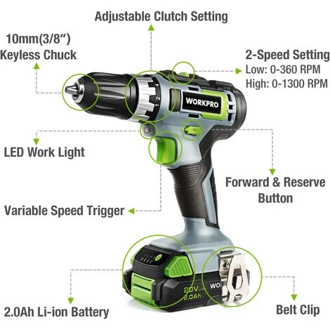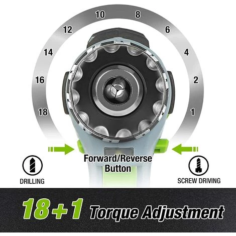 【Perceuse Visseuse 25Nm】Cette perceuse à visseuse sans fil dispose de 18+1 niveaux de couple. Il offre des opérations à 2 vitesses: 0-360 tr/min et 0-1300 tr/min qui convient à diverses travaux de perçage et de vissage